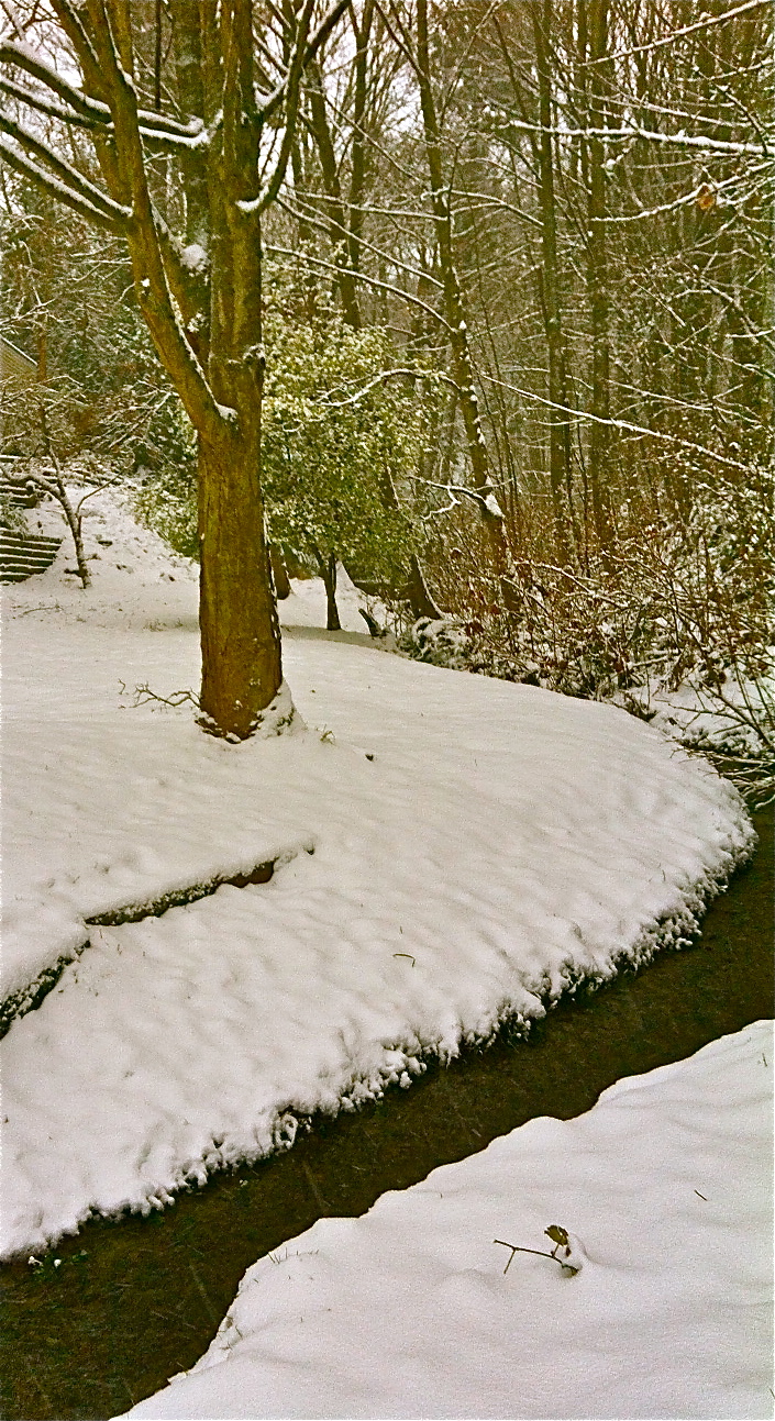 It snowed the other day. Ted, my trusty wire fox terrier, decided that my hours at the desk were done, and it was now his time for his walk. We set off into the city woods, an acre or two set aside as a green belt. It was a different world. Gone were the teenagers giggling and whispering. Now there was silence. Birds huddled high up in the trees. Branches scraped, oh so softly. The loud crunching of my winter boots cut through the deep snow, the silence of Ted’s stealth hunter’s walk accompanied us. His breath hanging frozen in the air. We were inside our own snow globe.