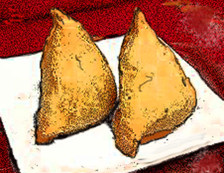 I told her what happened, how we lost our senses, and besides which, the lad was a growing boy. Well, I suppose I should tell all the truth. He was a strapping lad of twenty, working manual labor all day, and needed to eat. Sounds good, but how do you explain that he had to keep pace with me devouring those samosas when all the manual labor I do is pound the typewriter keys? Better left unsaid.