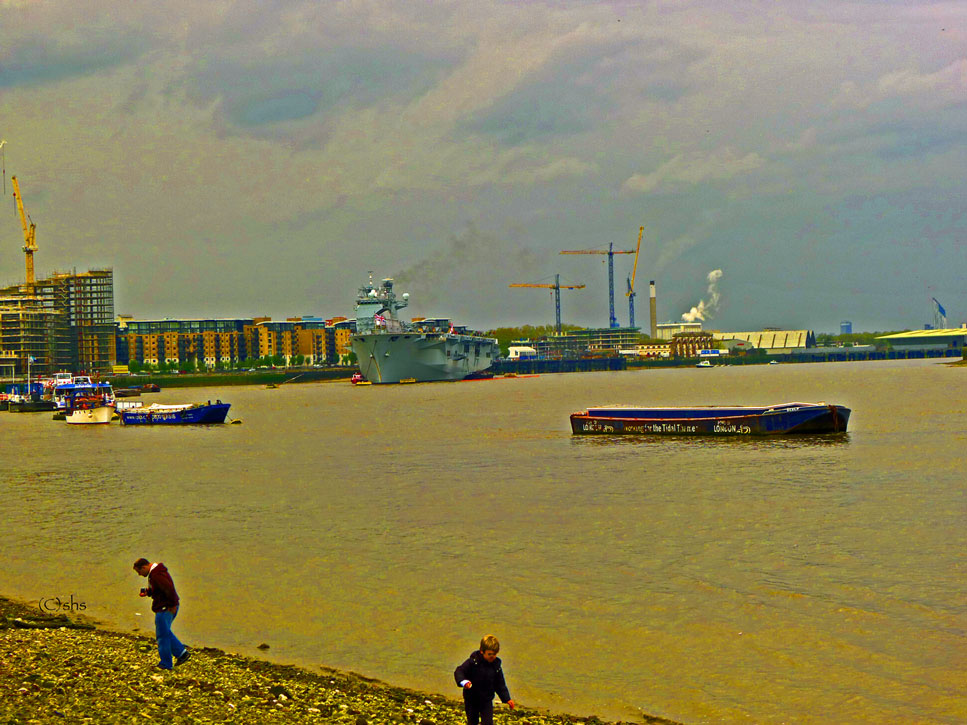 Mucking about when the rain lets up. Battleship watching and seashell scavenging. The Thames never remains the same.
