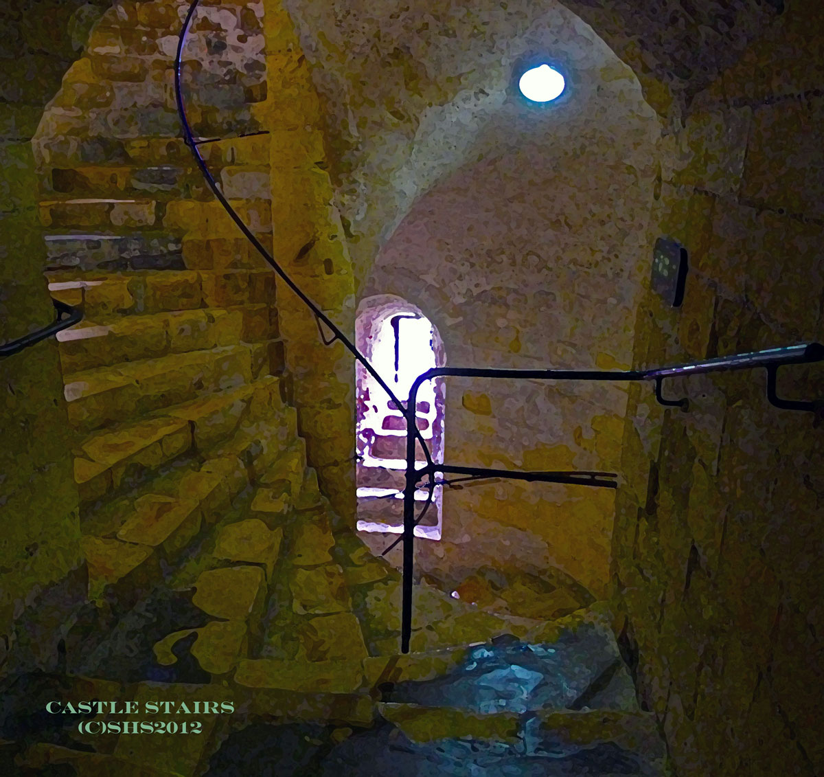 Course for an ” accident” to happen the inside of a castle was not any safer for those who were not light in the foot. Even with the modern addition of handrails, it takes a bit of adjustment, the stairs are steep, narrow, and worn in the middle where man has over the centuries found the best footing.