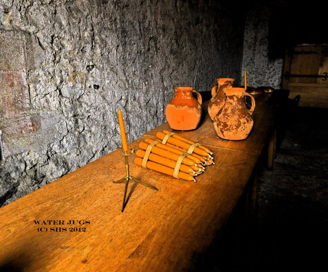 Although the candles are modern and the jugs reproductions, the castle display does give one the feeling that life was simple back then. Simple in the sense that life was utilitarian and only the King had the luxury of decorations.