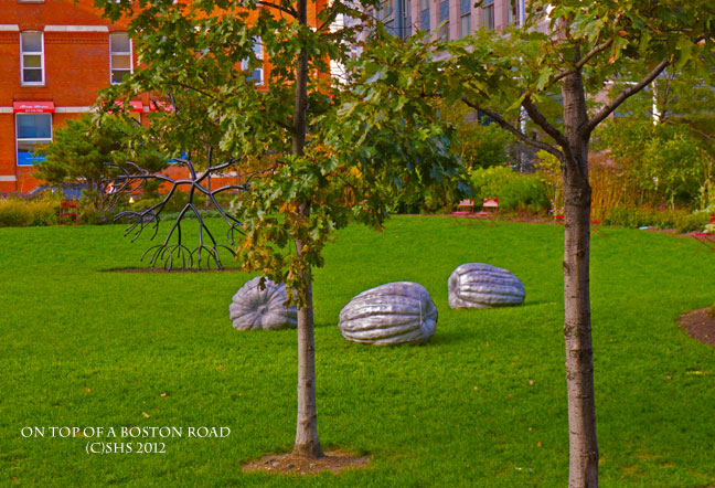 Driving from the hotel to the airport, you don’t get to see a lot of Boston, as they have cleverly built tunnels to and through the city. On top of these car tunnels is part of the Emerald Chain of Parks. It’s a clever idea, shuffle the traffic underground and plant trees for those above. I have a really hard time with tunnels and fast cars, it never fails to remind me of Princess Diana and that awful day in the Paris Tunnel. I just can’t shake that memory whenever I go through a car tunnel.