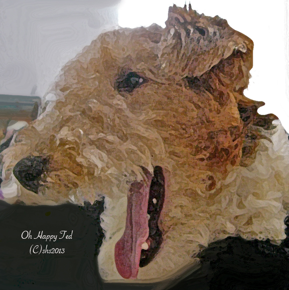 I had been out visiting my sister and what a drive that was. You know you’ve been gone a long time when the motor way ends and you’re still not at your destination. I just sank into the chair when I got back home, ignoring all ball tosses, all invitations to play. I had forgotten rule number one of living with a Wire Fox Terrier– being rude to a fox terrier never pays. Ted ran off somewhere. Peace and quiet at last, or so I thought. I kicked off my shoes and placed my thin dress socks inside them. I would put them away when I went upstairs. I fell asleep in the chair to wake up with Ted in my lap, bearing a very odd smile on his face.