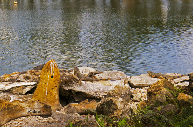 One of the wonders of Florida is the wildlife, and it’s everywhere. I walked back to the hotel and noticed a rock moving! Too much sun? No, it was lizards sunning themselves. A gate kept me from going too close, and since I don’t shoot with a telephoto lens, this was the closest I could get to them. I never would have noticed them, if that one in the middle hadn’t proudly raised his head. He turned and looked at me with the same curiosity I had, although I imagine he was much less impressed with what he saw!