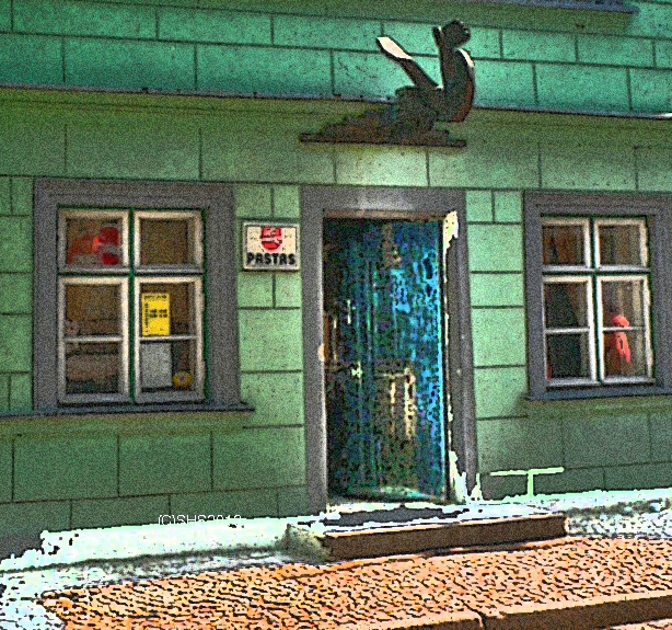 litho2This door is in Klaipeda Lithuania. It was a mixture of the old and new. Old worn wood of the door competes with the brand new cement surround, and of course above the door, a carved wooden dragon of sorts guards those coming in and out.  The carved wooden dragon is a Lithuanian art form. One finds all sorts of carved wooden objects in this northern country.