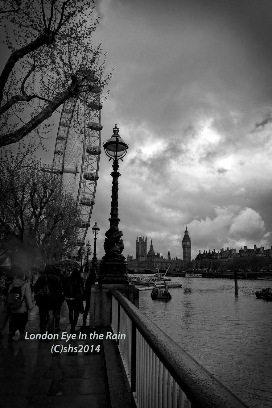 I was heading home from Foyles Books  on the South Bank and I just didn’t want to get on the train home right away, I wanted to stretch my legs. I took a couple of photos of the London Eye wondering if I would ever get the courage to go up top. I can imagine the view must be stupendous, however, I don’t like being in a glass cage that sways millions of miles above the river. I know, I know…it’s safe and all that, but the primitive part of the brain steps in and says...ummmm…not good for survival. Step back from the edge! This year I want to experiment with black and white photography  along with the usual fun stuff so I took these rather dark photographs just before the sky opened and drenched me to the skin!