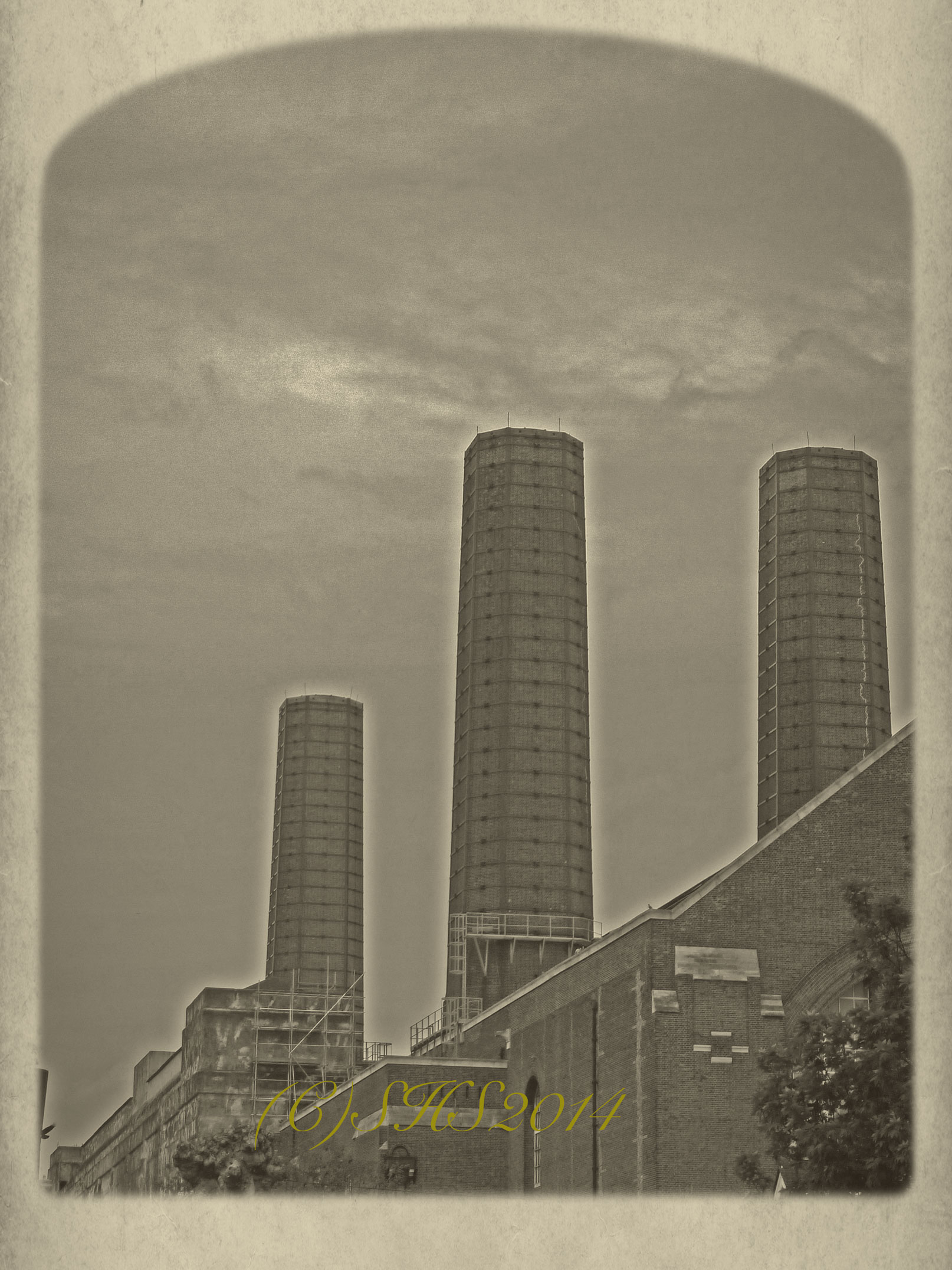 Battersea Power Station, so old, and now so modern. I wanted to capture the feeling of London back in the early 1900’s with this photograph. This power station is no longer in use, and was due for demolition a few years back. Thankfully it’s now under development for luxury flats and shops. Modern life has saved the old Victorian Smoke Stacks from demolition. The old smoke stacks were in bad shape and part of the development package was the restoration of these chimneys, and at a frightful cost! So for another hundred years or more to come…Battersea Power Station for all to enjoy and for a few lucky ones- home.