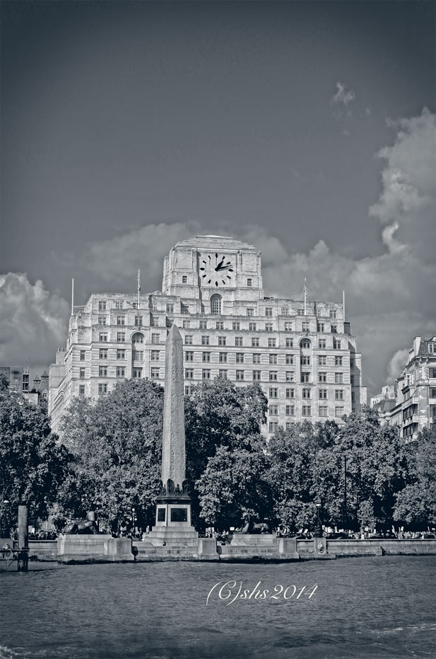 One of the things that I love about London is the contrast and sometime very successful balance of the old with the very new. Well, age is all relative. The stunning Shell Building was a glory of Art Deco modernity when it was built in1930- 1931. It’s a solid impressive building, and on some days, it can look quite oppressive. One can imagine, spies, stories of espionage all with the dark imagery of Orwellian menace within its solid walls. It would be the prefect setting for the home of Big Brother. The large clock is the largest in London and was once known as Big Benzene. In front of the massive 84 meter building stands Cleopatra’s Needle, created in the era of Pharaohs and swirling Saharan Dust. It was a gift to the United Kingdom from Sudan Muhammad Ali, the ruler of Egypt, in 1819. Moving it was a massive expense and for once the politicians got it right and did not fund the movement. It remained snuggled in the Egyptian sands until 1877, when it was finally sponsored at the mind boggling cost of 10,000 pounds. A horrific amount of money in those days. So from out of the sands of the desert, surviving wars, and nature’s determination to complete the life cycle… dust to dust, the needle defies time and stands on the side of the River Thames in perfect compliment to the daring architecture of Art Deco.